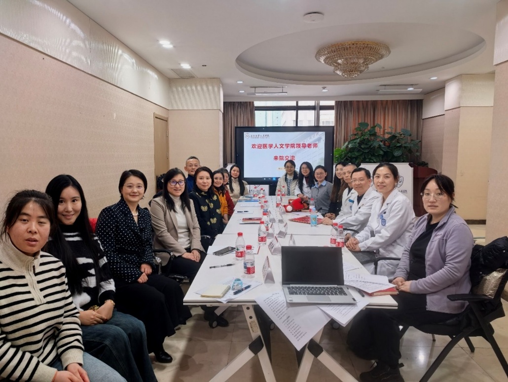 座谈会上,双方围绕医学人文课程体系设计、临床实践人文教育模式、医学人文师资队伍建设、医学生职业精神培养等议题进行了深入研讨,一致认为在新医科建设背景下,医学人文教育不仅是医学人才培养的重要组成部分,更是提升医疗服务质量、构建和谐医患关系的关键支撑。医学人文学院调研团队成员包括学院领导班子成员,以及医学语言文化系、健康政治学系、医学心理学系、医学史与医学哲学系、医学伦理与法律学系、健康信息管理系、体育与健康系等多个系室的骨干教师。参与调研的教师们纷纷表示,各附属医院的创新实践与积极探索令人深受启发,为学院进一步提升医学人文教育质量提供了重要参考。