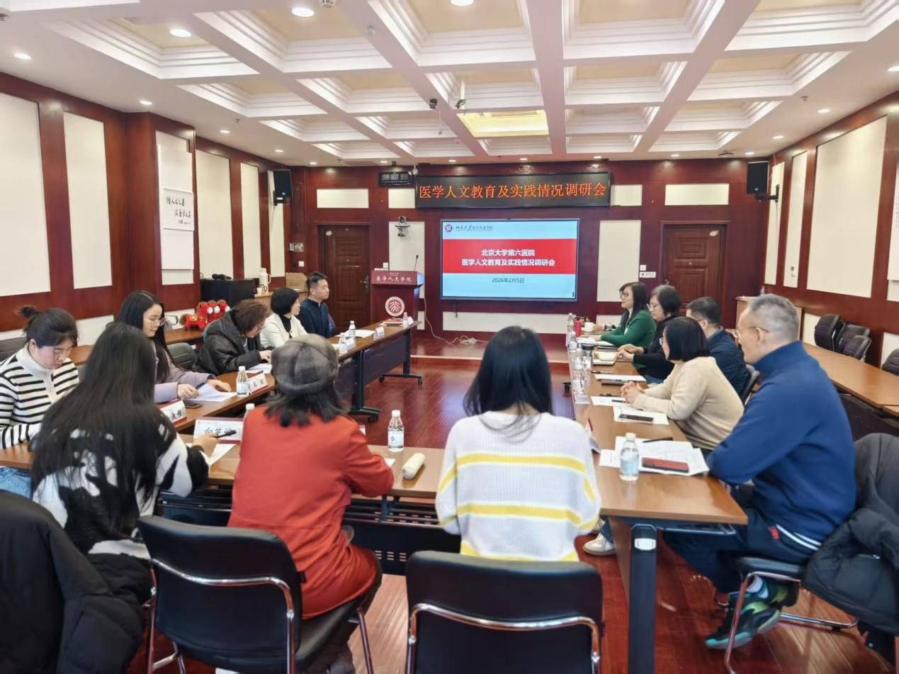 为深入贯彻党的二十大精神及习近平总书记关于高等教育和卫生健康工作的重要论述,进一步落实国家卫生健康委发布的《医学人文关怀提升行动方案(2024-2027年)》,促进医学人文教育与临床医学实践的深度融合,2026年1月下旬至2月上旬,北京大学医学人文学院院长郭莉萍、党委书记高静率调研团队,先后赴北京大学第一医院、北京大学人民医院、北京大学第三医院、北京大学口腔医院、北京大学肿瘤医院和北京大学第六医院六家直属附属医院,开展临床医学人文教育情况的专题调研。