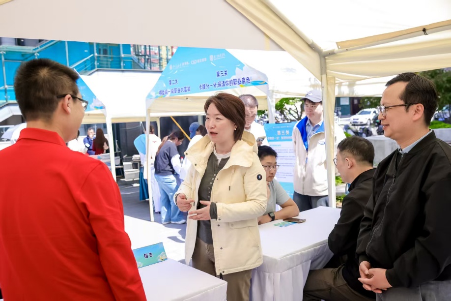 本次活动协办单位厦门弘爱医院总经理、2003级北大校友杨业烨也与同学们充分的沟通和交流,她表示:此次校园生涯日暨就业嘉年华活动中,深切感受到北医学子对医疗行业的热忱与对职业发展的思考。令人惊喜的是,现场不仅有即将步入职场的毕业生,更有大一大二的低年级同学主动前来咨询交流。她期待与各位优秀的北医学子携手同行,共筑健康中国美好未来,也期待有更多校企人才对接优质平台,助力医学人才高质量就业。