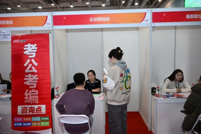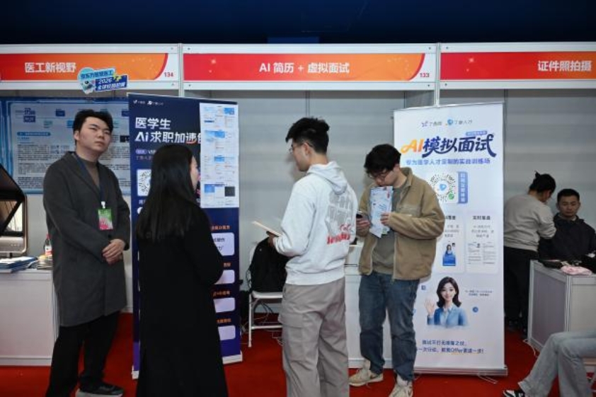 医学部学生就业指导服务中心用心用情做好服务保障,在场馆外设置用人单位展位分布图,引导毕业生精准锁定目标;现场设立会务组统筹协调,确保用人单位与学生有序入场、高效对接。同时,本次双选会还特别打造三大主题区域、九大功能展位,以精细化服务回应学生多元需求。政策权益咨询区内,工作人员围绕三方协议签订、档案户口转递、劳动权益保障等毕业生关切问题,提供专业解答与指导;行业机遇探索区聚焦医院招聘政策、企业用人标准、选调生报考等热点内容,帮助学子深入了解行业需求;求职能量加油站推出AI简历优化及现场打印、AI模拟面试、职业妆容打造与证件照拍摄、基础医疗保障等多项服务,让毕业生在求职路上感受到实实在在的温暖与支持。