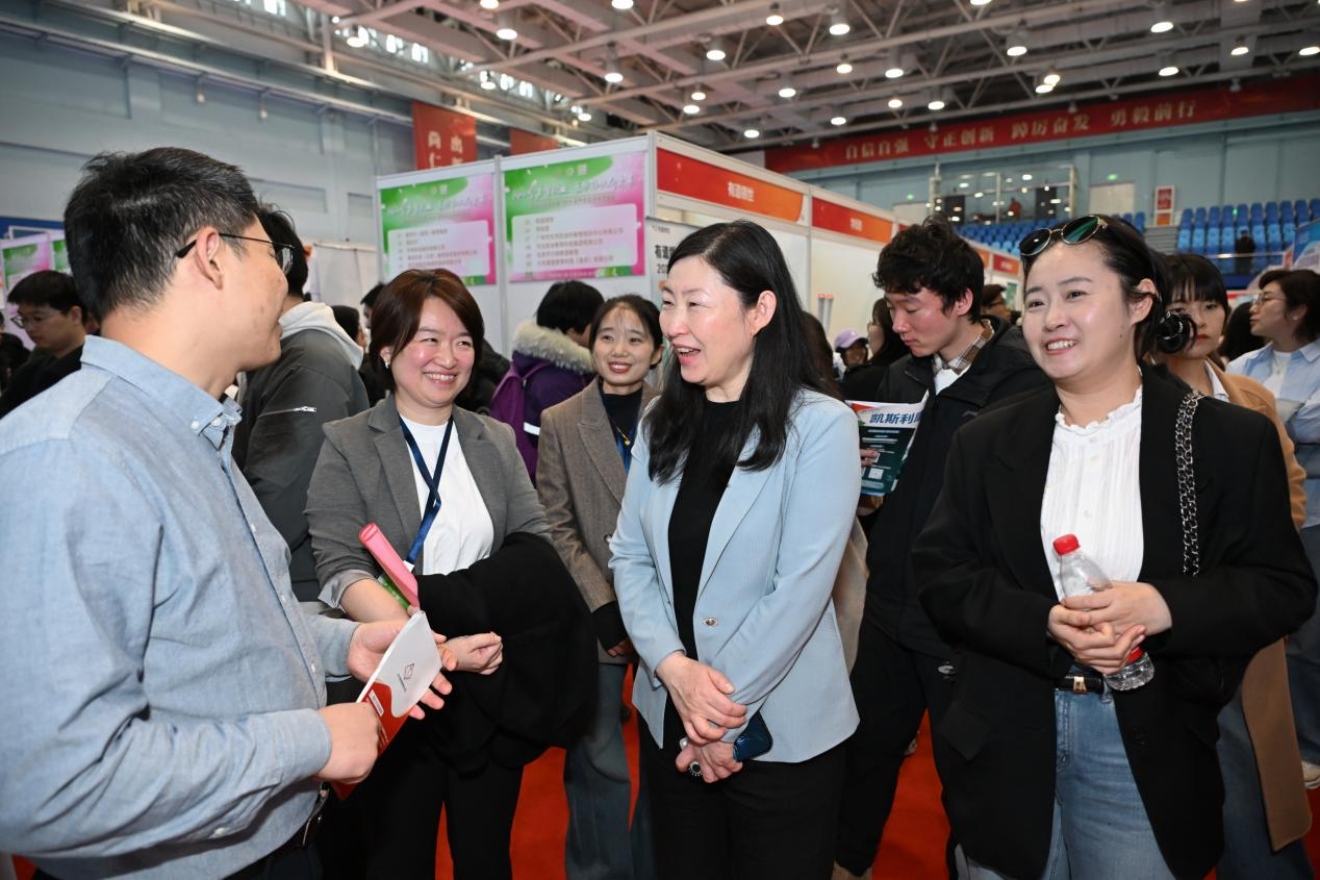 杨莉与用人单位和同学们亲切交流