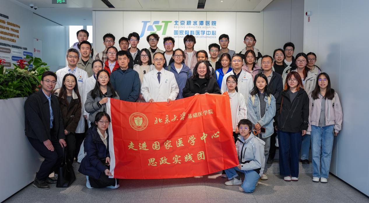 2026年3月27日,北京大学基础医学院举办“走进国家骨科医学中心”思政实践活动。学院党委副书记郑凌冰、医学部教育处教学管理办公室主任王景超、学院团委书记曲远山、团委副书记郭姣裕与30名基础青年共同参访了北京积水潭医院回龙观院区与新龙泽院区。活动通过专家分享与实地探访相结合的形式,让学子们零距离感受积水潭医院作为“国家骨科医学中心”在医疗、科研及人才培养领域的深厚积淀与顶尖实力,成功搭建起高校与“医学国家队”之间的人才交流桥梁。