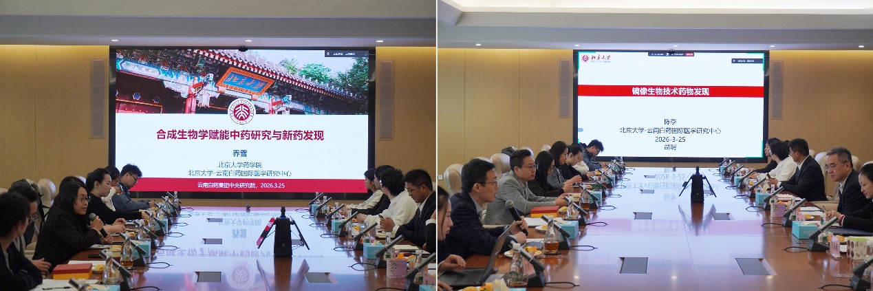 学术分享环节精彩纷呈,多位专家学者围绕前沿医药研究领域带来专题分享。北京大学药学院乔雪研究员以“合成生物学赋能中药研究与新药发现”为题,阐释合成生物学在中药现代化与新药研发中的创新应用;陈季研究员以“镜像生物技术药物发现”为主题,分享镜像生物技术在药物研发领域的前沿进展与实践探索;云南白药集团孙纪云、杨贺川分别围绕“核素偶联药物”“AI赋能药物研发”展开分享,展现了企业在医药研发领域的技术探索与实践成果,双方在思想碰撞中凝聚创新共识,在经验交流中拓宽合作思路。