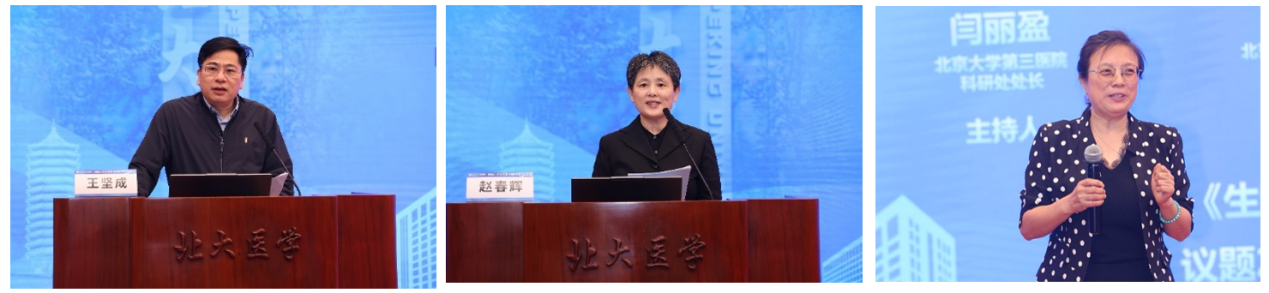 国家卫生健康委员会医药卫生科技发展研究中心主任顾金辉,中华医学会医学科研管理学分会候任主任委员、北京协和医学院教授关健,北京市合达律师事务所资深律师、国家药监局“药品管理法实施条例”宣贯团成员杨翼飞,北京市实验动物管理办公室(北京市人类遗传资源管理办公室)管理一科副科长刘凌子等作为特邀嘉宾解读政策;北京大学第三医院药物临床试验机构主任李海燕,北京大学肿瘤医院I期临床病区副主任龚继芳,北京大学第三医院科研伦理综合办公室主任陈亚红等分享一线实务探索;北京大学药学院教授刘涛,北京大学第一医院科研处处长李娌,北京大学人民医院科研处副处长胡凡磊及李海燕和龚继芳参与圆桌讨论与互动问答。北京大学医学部副主任王嘉东出席论坛并致辞。论坛由北京大学医学部科研处处长王坚成、副处长赵春辉,北京大学第三医院科研处处长闫丽盈共同主持。