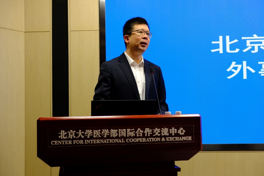 会议第二部分,进行了外事相关的政策培训。医学部国际合作处副处长田婵主持。医学部宣传部部长焦岩就相关宣传工作提示做了深入解读;国际合作处相关工作负责同志就外事相关政策、审批程序及重要提示等做了培训。