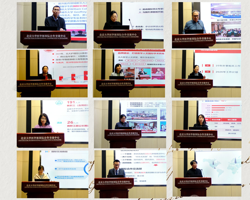 医学部国际合作处处长刘燕回顾了2025年医学部国际合作处深入贯彻党的二十届四中全会精神,扎实推动各项外事与港澳台工作,加快打造国际科技协同创新平台,切实提升学校的国际影响力与全球竞争力的工作成果。新的一年,国际合作处将凝聚多方力量,发挥好桥梁与平台的作用,在推动高质量国际合作、培养国际化医学人才、以才引才,以智启智、以高水平引智推动医学高质量发展、留学生工作提质增效等方面继续努力,推动建设医学部国际交流合作的新格局。