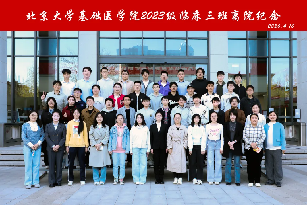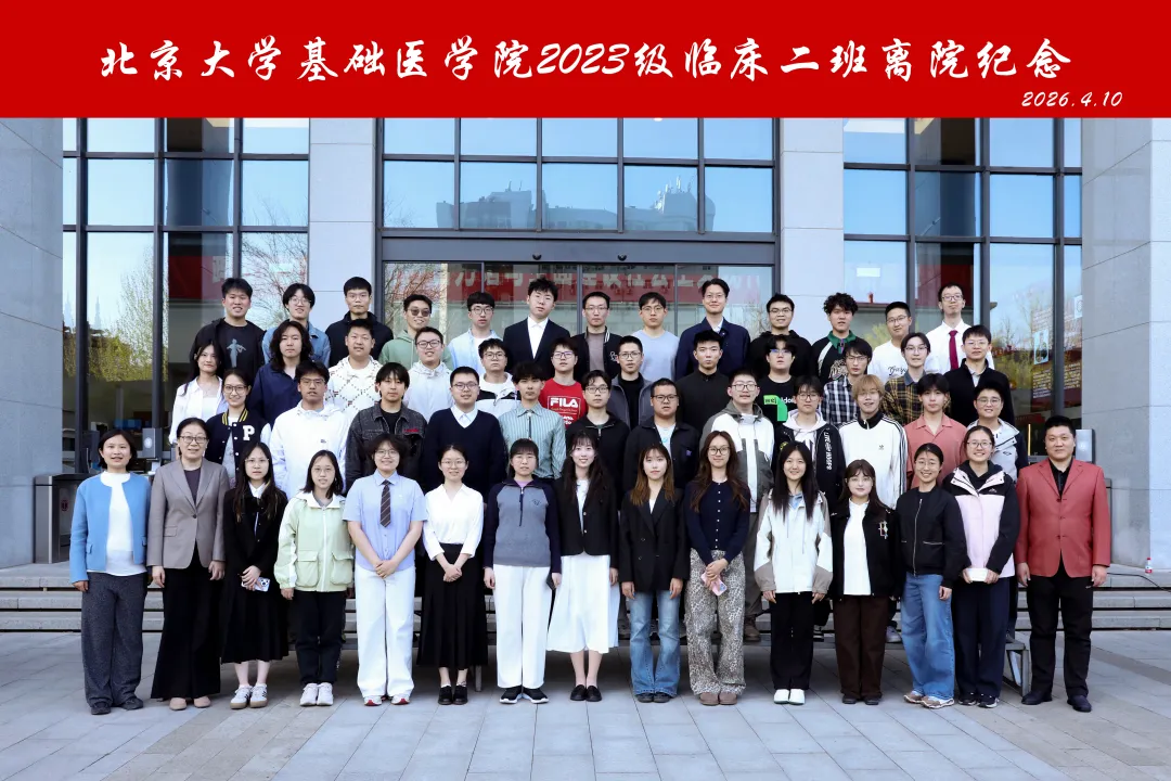 2026年4月10日,北京大学基础医学院为即将进入临床医院的同学们举办了2026年离院仪式。今年,学院共有291名2023级临床医学本科生,在完成基础医学阶段的学业后,他们即将奔赴临床医院开展下一阶段生活。离院仪式既是对基础医学阶段的一次深情回望,也是对未来医路的一次庄严宣告。在这个激动人心的时刻,学院师生齐聚一堂,共同见证学子们圆满完成基础医学院的学习任务,踏上医学之路的全新征程。