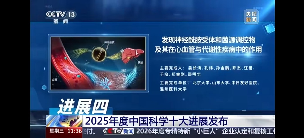 2026年3月25日,由国家自然科学基金委员会主办的2025年度“中国科学十大进展”评选结果发布,北京大学姜长涛教授、孔炜教授、孙金鹏教授、乔杰院士、汪锴研究员,联合山东大学、中日友好医院、温州医科大学等多团队合作完成的“发现神经酰胺受体和菌源调控物及其在心血管与代谢性疾病中的作用”入选。