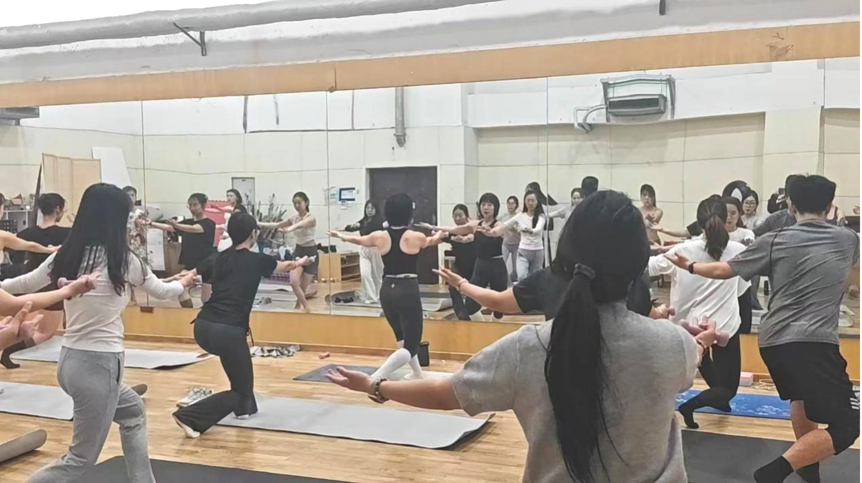 在训练过程中,老师针对不同同学的情况进行个性化调整,帮助大家找到适合自己的节奏与力度。现场氛围专注而轻松,同学们逐渐放下外界干扰,将注意力集中于身体本身,在运动中实现情绪的释放与转化。