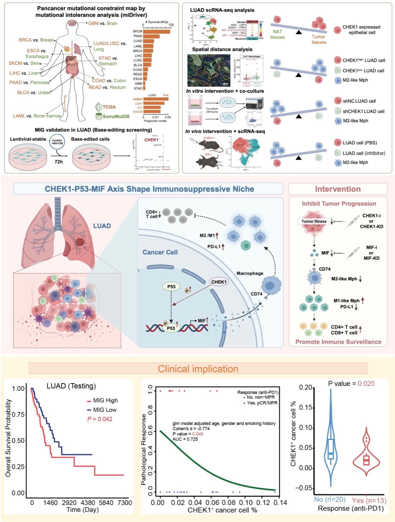 突变不耐受分析与实验验证揭示CHEK1通过“p53-MIF”轴重塑肺腺癌免疫抑制微环境促进肿瘤进展的分子机制及临床意义