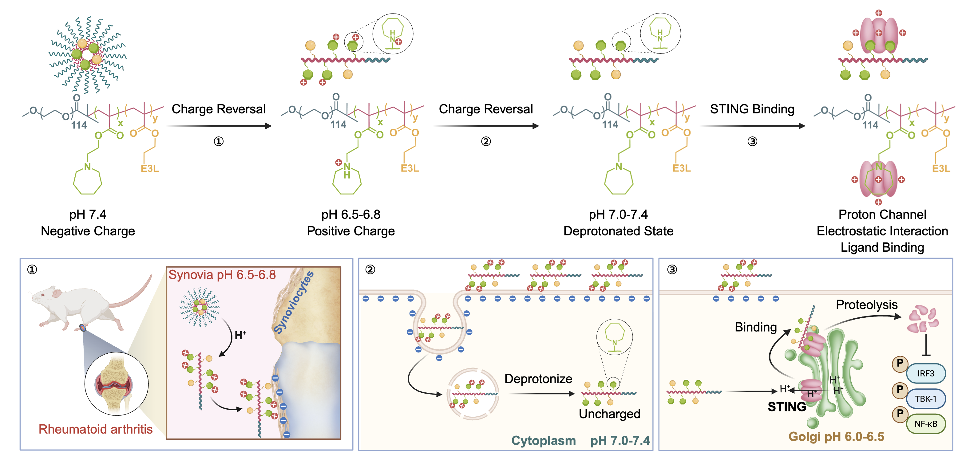 综上,该研究首次报道了基于电荷反转机制的智能STING降解剂CreTACs,实现了对类风湿关节炎的组织特异性治疗,为克服蛋白靶点的变异体异质性和系统毒性提供了原创性解决方案。这一平台技术不仅为RA治疗带来了新希望,更有望拓展至其他STING驱动的炎症性疾病,并为功能性高分子材料在精准医疗领域的应用开辟新方向。