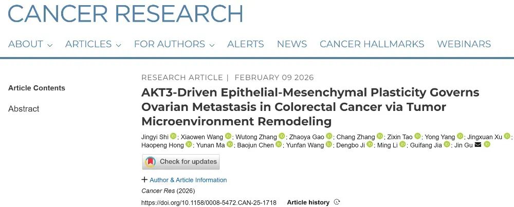 北京大学顾晋/贾桂芳团队揭示结直肠癌卵巢转移关键机制成果刊发《Cancer Research》