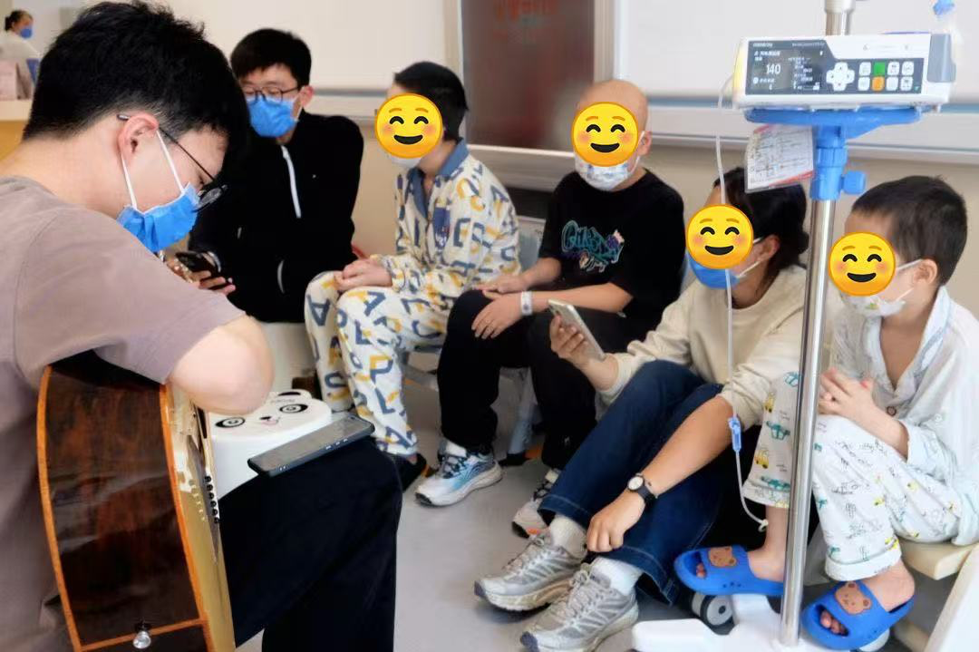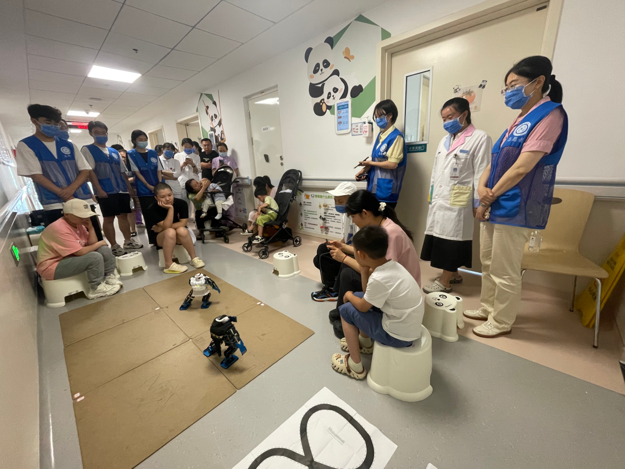 人文服务志愿者则为病房注入温柔力量。来自北京大学、北京城市学院、北京石油化工学院的大学生志愿者们,带着乐器、画笔、机器人走进儿童医学中心病房,开展“音乐疗愈”“绘画解压”“机器人总动员”等病房人文活动,让住院时光不再苦闷漫长。在一次病房音乐会中,被病痛困扰多日的孩子们跟着吉他的节拍合唱《孤勇者》,稚嫩却有力的歌声回荡在病房,家长们的眼角泛起笑意:“孩子已经好久没这么放松了,感觉心里的石头轻了些。”