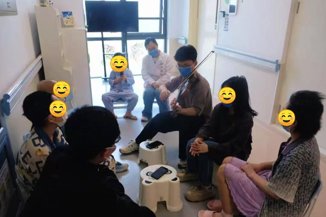 清华大学志愿者在病房带领病房音乐会活动