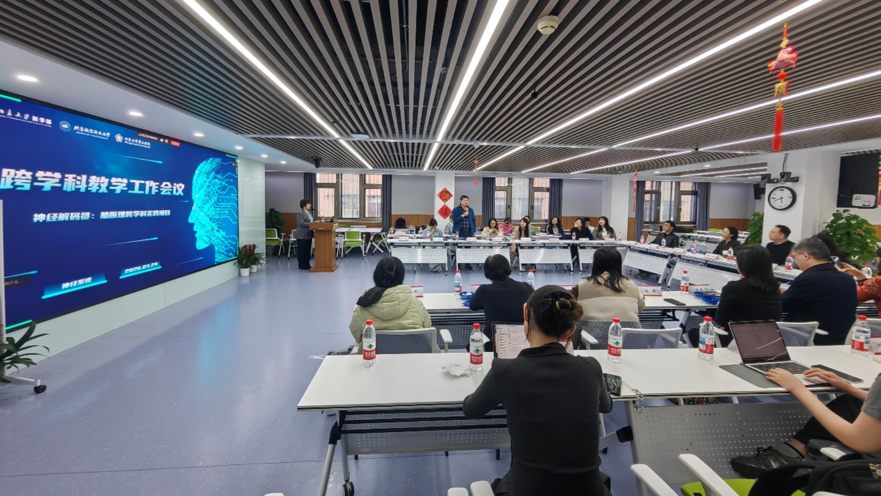 2026年3月24日,神经系统课程团队与北京航空航天大学教师联合举办的跨学科教学工作会议在北京大学第三医院教育教学中心热烈召开。来自双方的教育教学管理者、课程负责人及骨干教师齐聚一堂,围绕《神经解码员:脑功能跨学科实践项目》这一创新的医学+AI跨学科教学实践项目展开深入研讨,共谋复合型人才培养新路径。